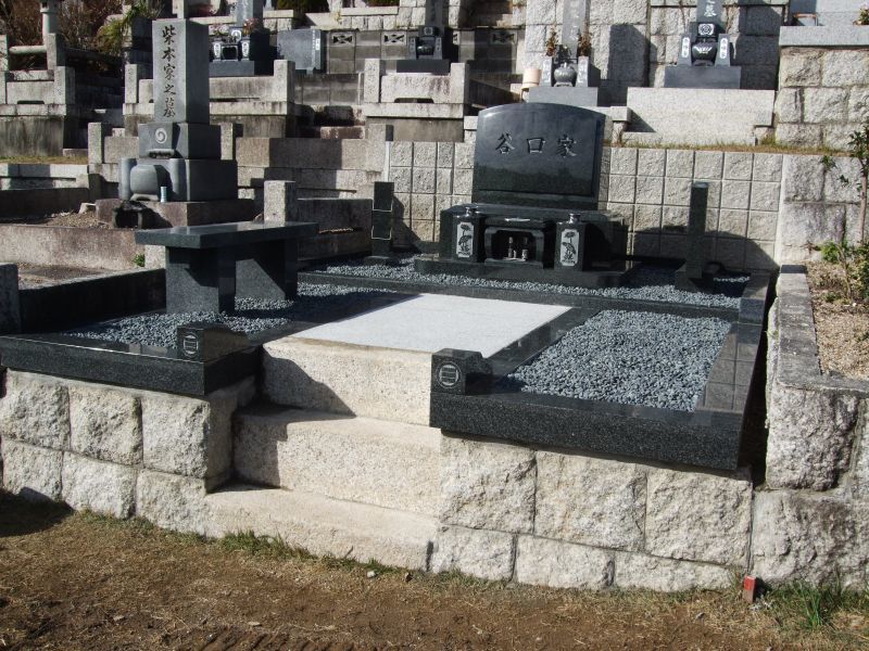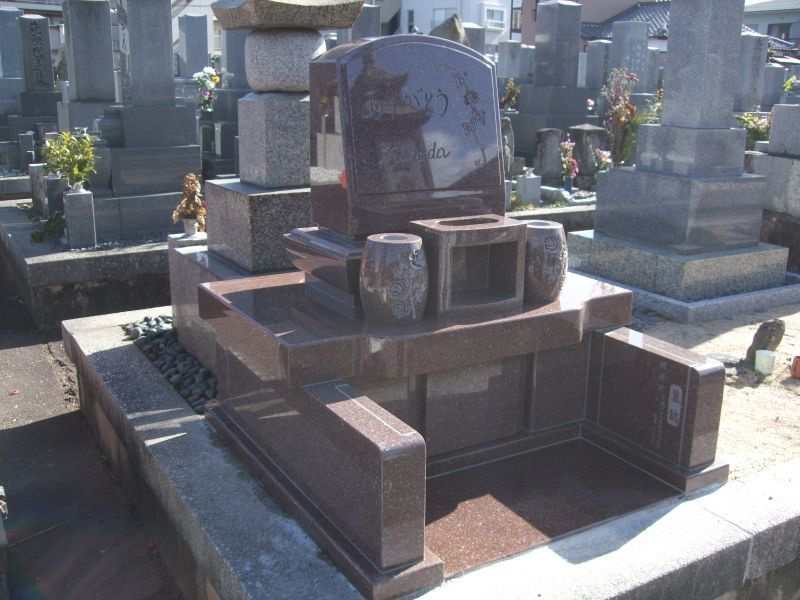 古い墓を撤去し、新しい墓に建て替えたもので、古い墓の感じを残しつつ、新しい型を取り入れて設計しました。